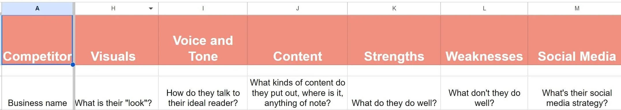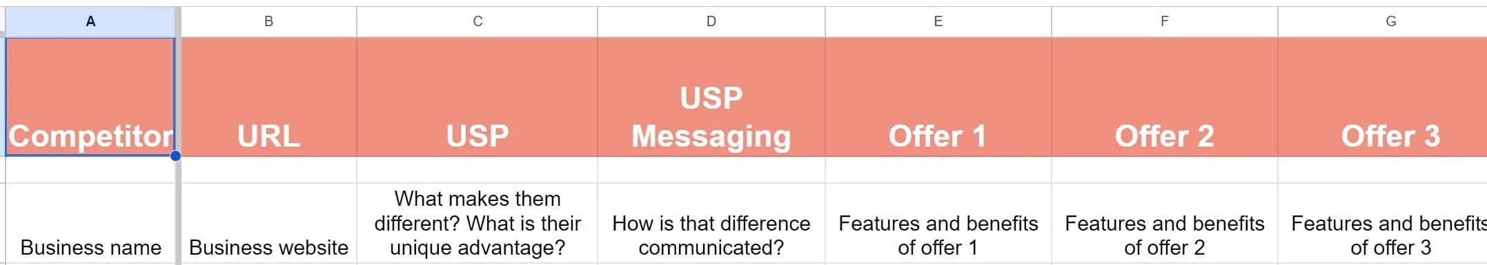 Next time you're at a loss on how to move your business forward, open up a new Google sheet and take 30 minutes to fill out these columns in your comp analysis: