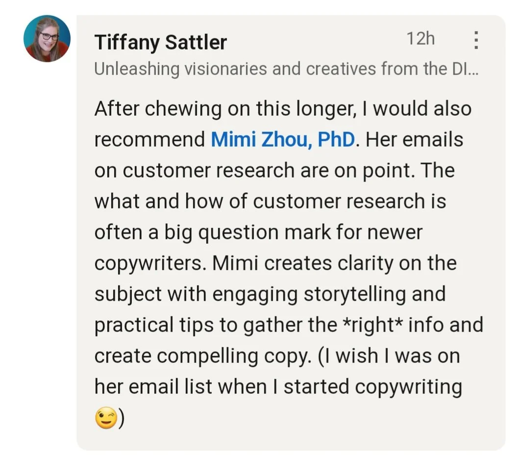 Created by a conversion copywriter tired of vague “Talk to your customers!” advice that doesn’t explain how research is your path to more profits
